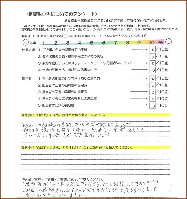 | 4.担当者からのご提案の充分性の満足度 | 10点 |